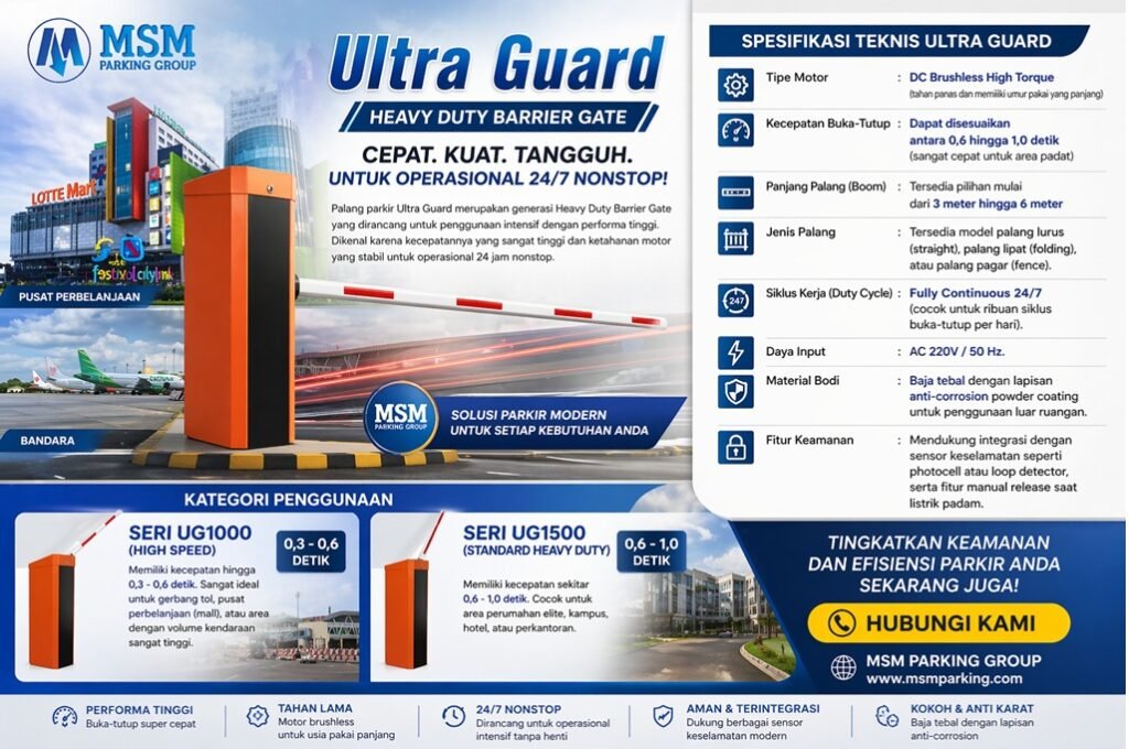 Pernahkah Anda terjebak antrean panjang di pintu keluar mall atau gerbang tol hanya karena palang parkir yang bergerak lambat? Bagi pengelola gedung, kemacetan di titik akses bukan hanya masalah kenyamanan, tapi juga soal efisiensi bisnis. Di sinilah Ultra Guard hadir sebagai standar baru dalam teknologi barrier gate.