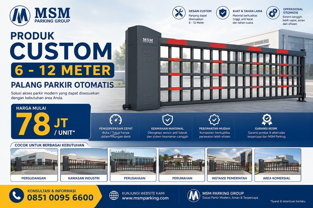 Berbeda dengan palang parkir biasa, tipe ini memiliki struktur lebih kokoh, motor lebih kuat, dan umur pakai lebih panjang.