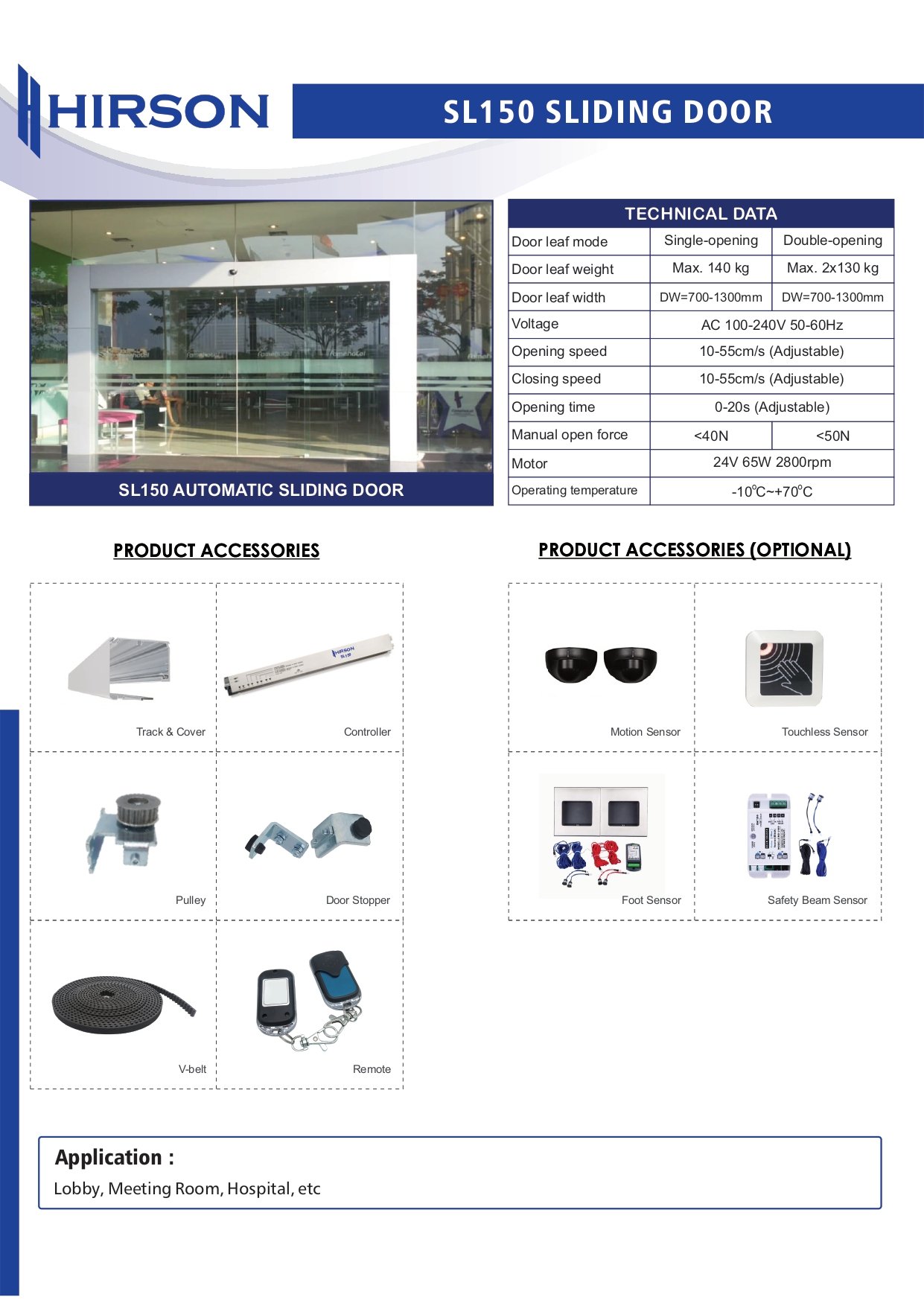 Produk ini mengacu pada spesifikasi teknis pabrikan sistem sliding door otomatis yang digunakan dan didukung oleh data teknis resmi